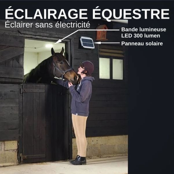 Eclairage sans électricité, pour les boxes ou abris de vos chevaux. Avec nos kits Hubi Work vous pouvez éclairer 16m² ou 64m² .